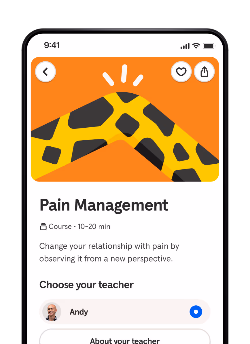 Explore 30 audio-guided sessions to support both mind and body — offering techniques to help manage physical discomfort, reduce tension, and build resilience through moments of pain.